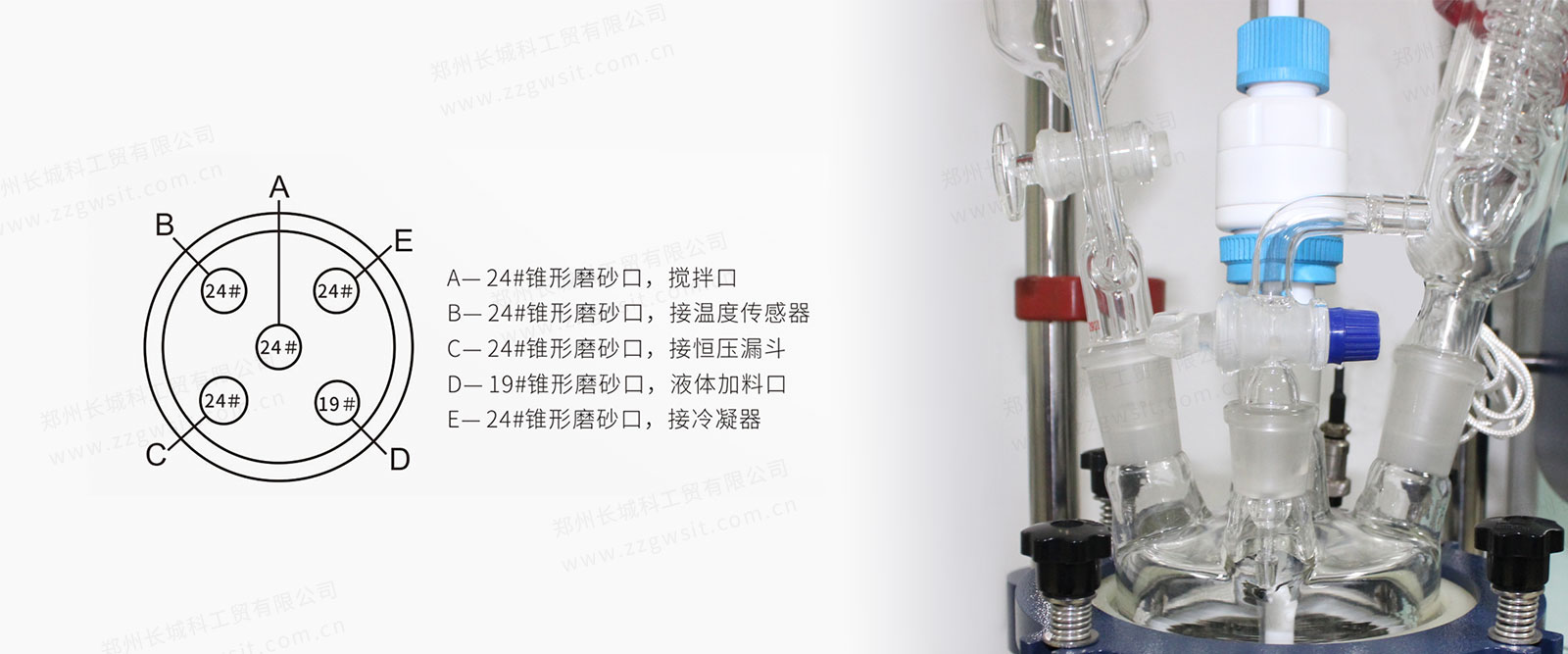 | 釜蓋 | 中央開口 | 24/40 錐形磨砂口 | 50# 法蘭口 | |||